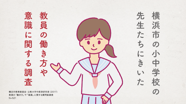 この映像では、横浜市教育委員会と中原淳研究室の共同研究の調査結果のダイジェストを簡単に解説させていただくことをとおして、なぜ働き方を見直す必要があるのかを考えていただけるように編集されています。
