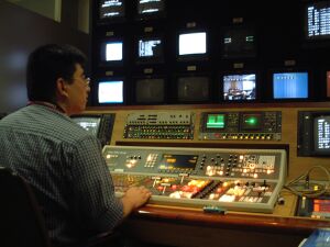 6月8日・9日に実施した「Webを活用した学習環境デザイン研修」の編集作業に、先日から立ち会っている。D3で撮影した3本のVを1本にまとめる作業です。実際に、「つぎ、この絵でいきましょうー」なんてやっています。で、これ、どこでやっているかっていうと、実はNIMEの中なのです。 あんまりよく知られていないんだけど、NIMEには、グリーンスタジオ、ブルースタジオという2個のスタジオと、ECS作業のできる場所が3つあるらしい。あるよ、あるよとは聞いていたけど、こんなに本格的なものがあるとは知りませんでした。