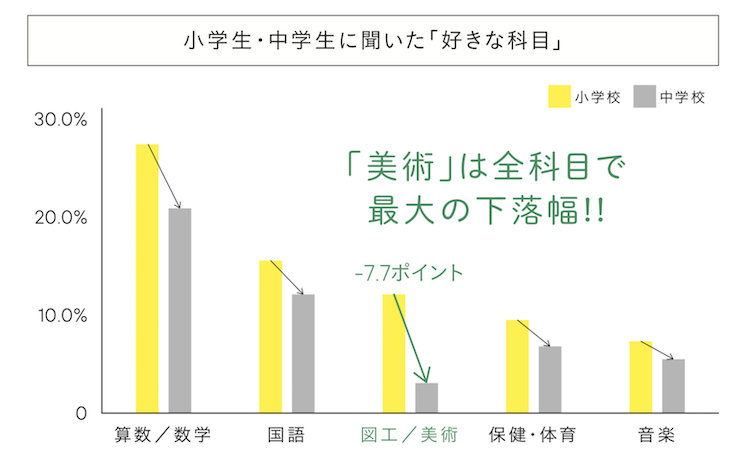 上記のグラフでわかるように、美術は、小学生のときには「好きな科目」の3番目にかかげられているのに、中学生・13歳になったときには、それは大嫌いの科目に転化します。その下落幅は科目でワースト1。この「13歳」のあいだに何かが起こるのです。それが本書の書名「13歳からのアート思考」のルーツですね。30年前は、「写真があるように、あえて写真のように絵を描く授業」「わけもわからず、作品名や作家名を暗記させられる授業」が、「美術の授業」でした。そういう過去の黒歴史をもっている方は、少なくないと思います。