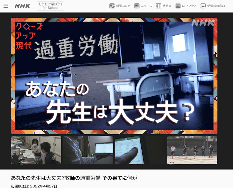 【本日どうぞご覧くださいませ】NHKクローズアップ現代「あなたの先生は大丈夫?教師の過重労働 その果てに何が」